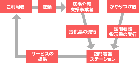 高齢者の方や、病気やけが等により在宅療養を必要とされる方に対して、経験豊富な看護師が看護サービスを提供致します。サービスの内容は、主治医の指示の下に、ご本人やご家族のご希望を考慮した上で看護計画を立て、ご提供致します。